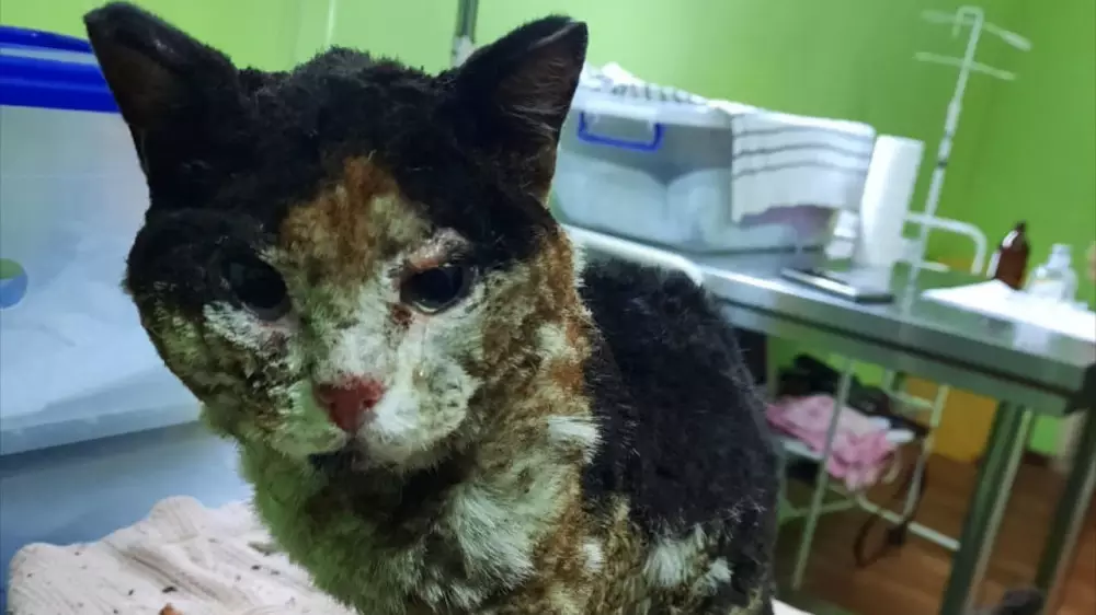 Фотографию животного с обгорелой шерстью опубликовали в социальной сети, после чего за кошкой выехала волонтер zverohelp_astana Вероника Бродецкая.
