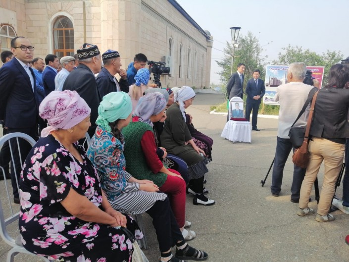 Церемония прощания проходит в Жезказгане. Проститься с погибшим пришли около тысячи человек. Также на церемонии присутствовал министр экологии, геологии и природных ресурсов Магзум Мирзагалиев и аким Карагандинской области Ерлан Кошанов.