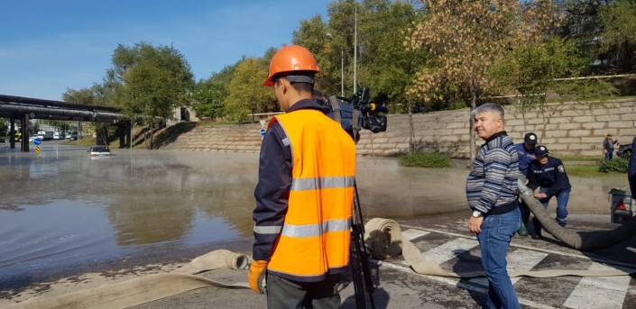На данный момент коммунальщики Алматы устраняют порыв теплотрассы в районе улицы Бокейханова и проспекта Райымбека.