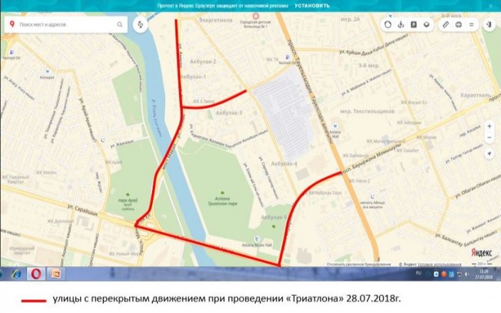 28 июля в Астане состоится открытый городской турнир по триатлону. Акимат столицы сообщает, что в связи с этим будут частично перекрыты несколько улиц, передает Tengrinews.kz.