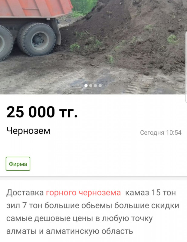 По информации заместителя председателя экологического движения, один грузовик качественного чернозема может стоить до 50 тысяч тенге. На сайте частных объявлений редакция обнаружила десятки сообщений о продаже плодородной почвы.