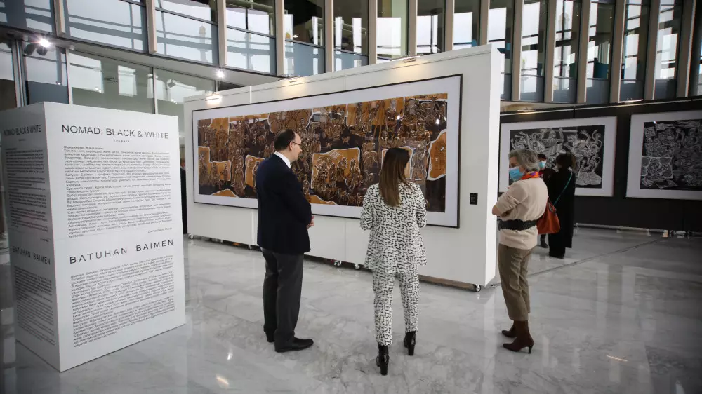 В Нур-Султане в галерее Forte Kulanshi ArtSpace открылась новая выставка произведений изобразительного искусства NOMAD. BLACK & WHITE. На этот раз зрителям представлены удивительные графические произведения, поражающие своим масштабом и наличием большого количества деталей, казахстанского художника Батухана Баймена.