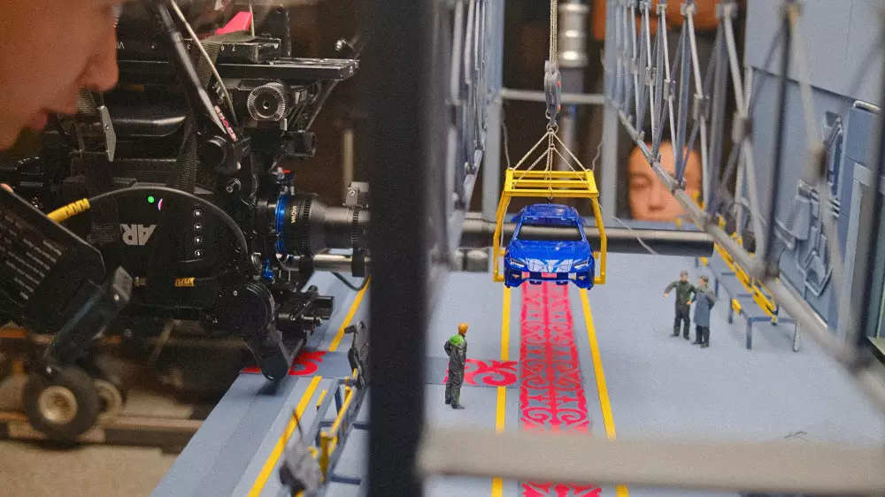 Видео начинается с кадра из цеха завода, где создаются машины. Интересно, что для ролика использованы физические макеты в масштабе 1:1000, сделанные с учетом всех деталей. Благодаря этому каждый кадр наполнен ощущением реальности.