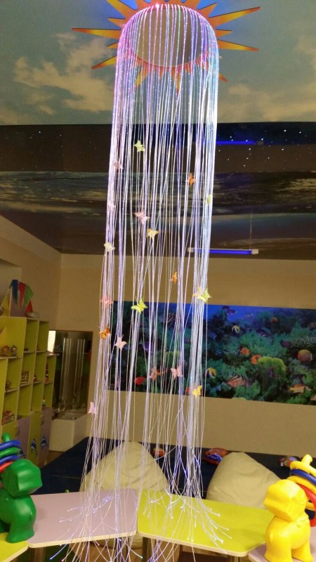 Психолог отмечает, что в такой комнате могут находиться и маленькие пациенты клиники. Она рассказывает, что настроение больных меняется в лучшую сторону, как только они заходят в сенсорную комнату.