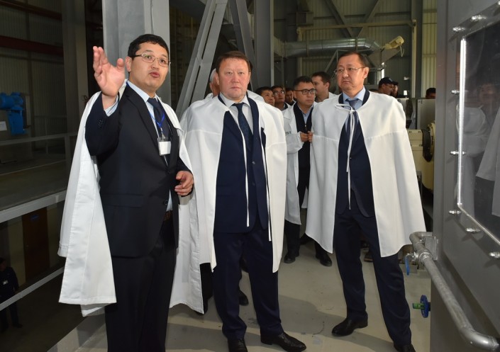 "Это уникальное предприятие. Надо подчеркнуть, в мире всего несколько таких заводов. Здесь будут работать 400 человек, и все они местные жители. Также возобновил работу свинокомплекс на 50 тысяч голов. В скором времени запустят мясокомбинат, которому нет аналогов в Центральной Азии. Мощность мясокомбината - 15 тысяч тонн мяса в год. В перспективе работой будут обеспечены 1 000 человек. Налоговые поступления в бюджет региона ежегодно составят 100 миллионов тенге", - отметил Кумар Аксакалов.