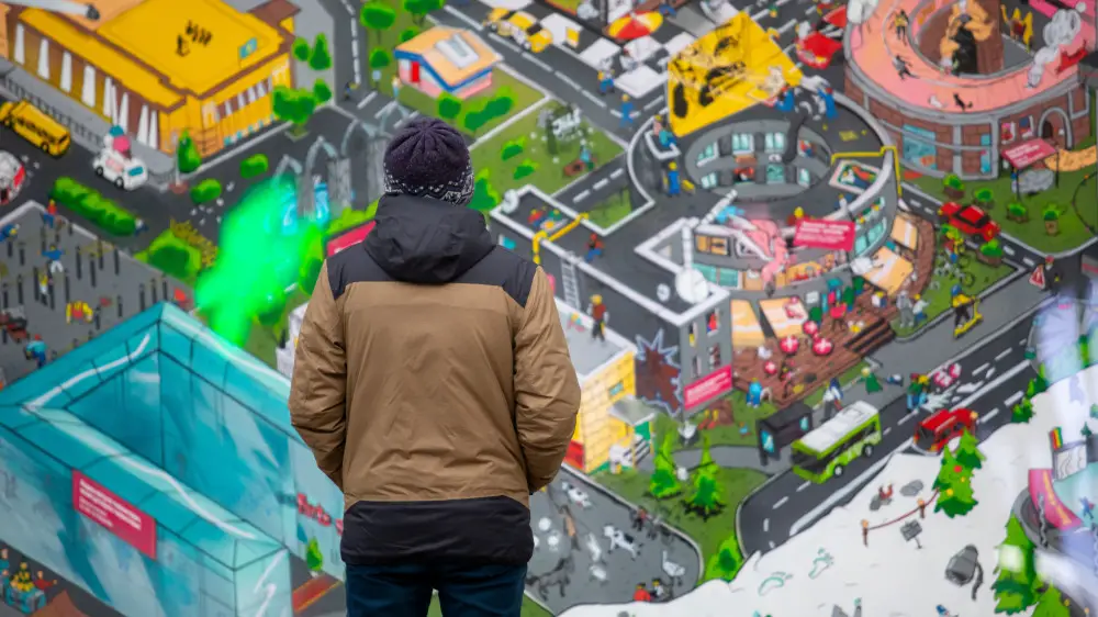 "Город в плюсе" — это творческое отображение Алматы. Внимательные посетители смогут найти в инсталляции изображения популярных мест города. Каждый элемент рассказывает историю о том, как карта Яндекс Плюс Forte помогает делать повседневные траты более выгодными, будь то покупка кофе или оплата поездки через Яндекс Go.
