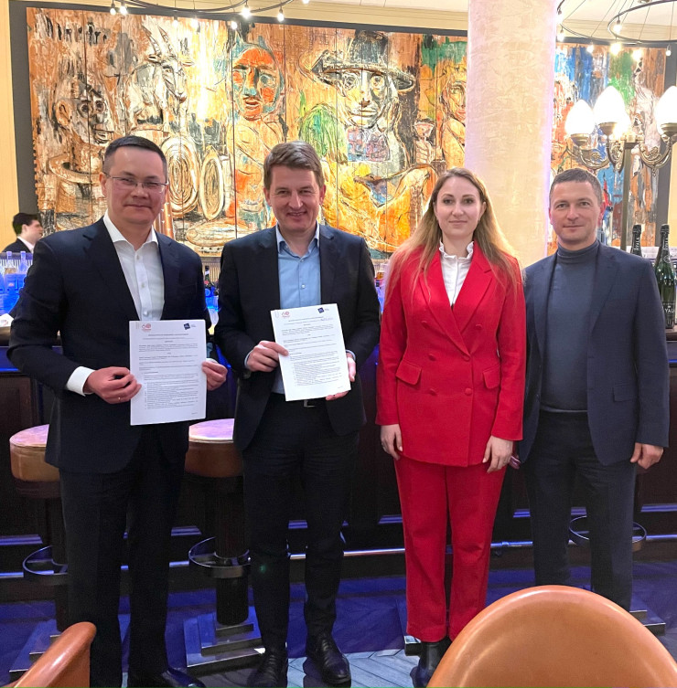 Мирас Дауленов, Йорг Рохолл, Марина Образцова, Марат Атнашев после церемонии подписания соглашения. Фото из архива пресс-службы университета