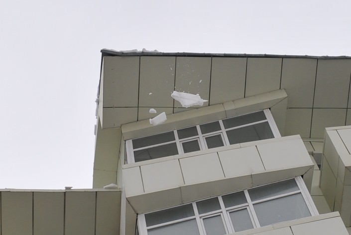 "Здесь на таких домах везде сыпется. Тут претензии к архитектуре. Как это они сделали? Там скатный балкон. Туда залезть нельзя, чтоб снег скидывать. На крышу попасть можно, но это декоративная облицовка. У меня есть бумажка из (Управления - прим.автора) архитектуры, где написано, что нежелательно туда людей пускать. Как я могу туда людей послать?" - сказала председатель КСК "ПК Юбилейный 2009" Вера Карлинская.