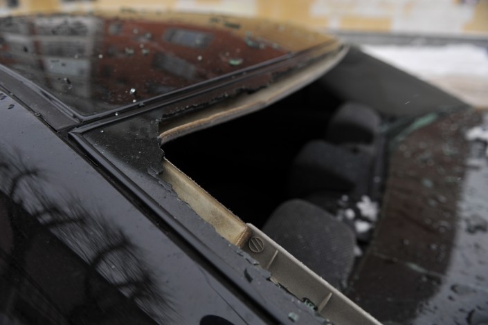 Отметим, что у автора видео накануне ночью также пострадала машина, но уже от упавшего листа облицовки. Как сообщила Асемгуль, облицовка упала на автомобиль ее мужа с крыши жилого дома. По словам женщины, ее муж едва сам не пострадал от падающей облицовки. Он шел к машине, чтобы ее перепарковать. У автомобиля в результате разбито стекло, и придется заменить водительскую дверь. Семья обратилась в полицию и  страховую компанию.