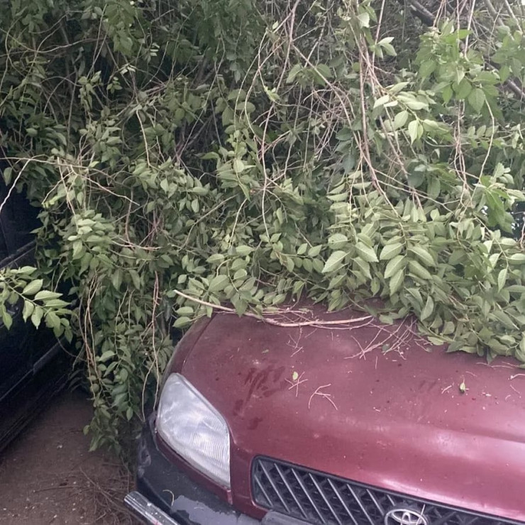 В соцсетях распространяется видео с дорог города. На кадрах запечатлена Toyota Land Cruiser Prado, которая остановилась прямо посередине оживленной улицы. Причиной стало повалившееся огромное дерево, которое повредило лобовое стекло, крыши и другие детали кузова.