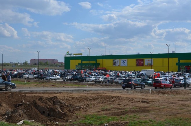 Сформировавшись, колона автомобилей начала выезжать, но у входа в торговый центр их стали останавливать полицейские. Стражи порядка проверяли документы и заставляли убирать флаги. Спустя какое то время, видимо из-за большого потока машин, проверка прекратилась и гаишники стали направлять автомобили в разные стороны. В итоге вместо одного автопробега получилось несколько десятков.