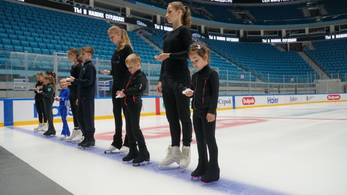 Рядом на льду стояли дети - юные фигуристы, вдохновленные Денисом на развитие своего таланта. В их руках горели свечи.