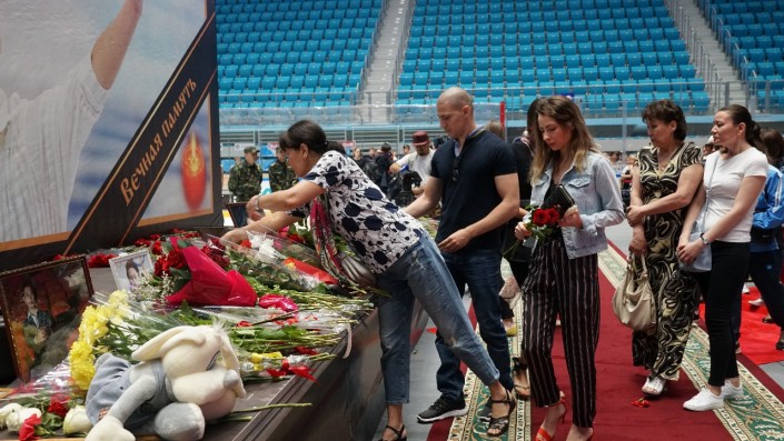 В центре ледовой арены установили портрет Дениса, под ним пришедшие возлагали цветы, ставили мягкие игрушки и фотографии. Мужчины и женщины не скрывали слез.