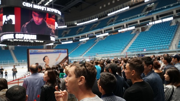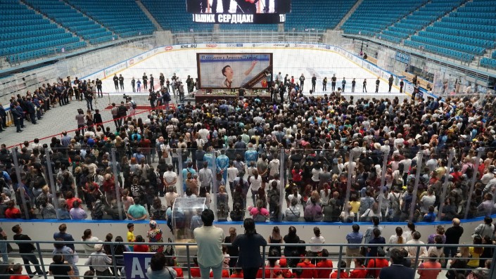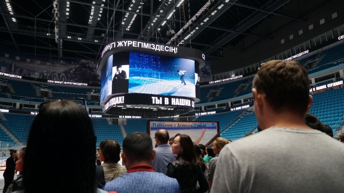 В ледовом дворце "Барыс Арена" в Астане проходит гражданская панихида, казахстанцы прощаются со спортсменом Денисом Теном, передает корреспондент Tengrinews.kz.