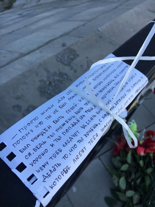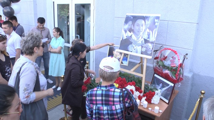 В Уральске у ледового дворца спорта собрались сотни горожан. У входа соорудили уголок, посвященный именитому спортсмену. Сюда люди несли цветы и мягкие игрушки. На экране демонстрировали фрагменты из выступлений Дениса Тена.