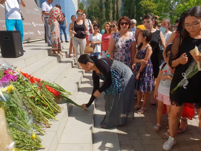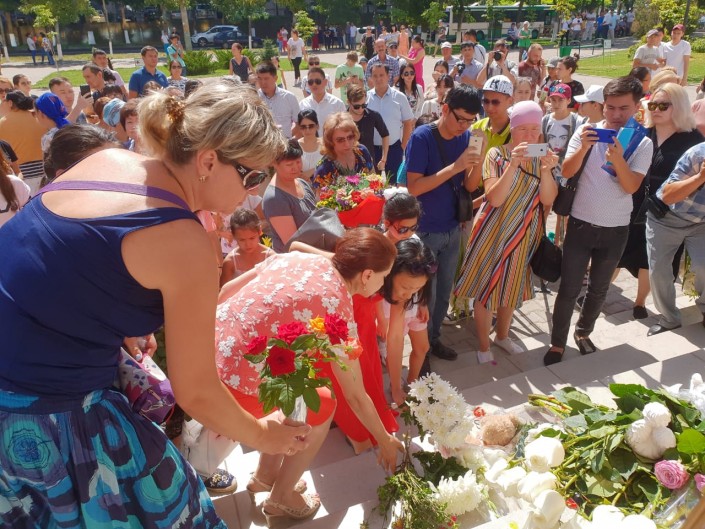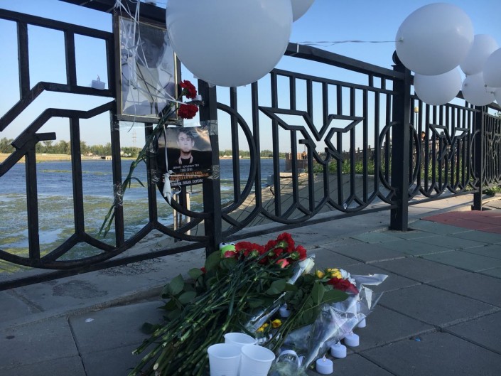 Семей не остался в стороне от трагедии. На набережной Иртыша собрались люди разных возрастов, они пришли выразить свои соболезнования и скорбь по погибшему спортсмену. Многие держали в руках фотографии Дениса.