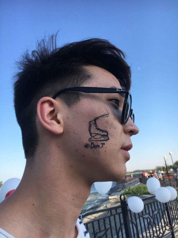 Уличный художник наносил всем желающим изображение конька с инициалами Дениса Тена.