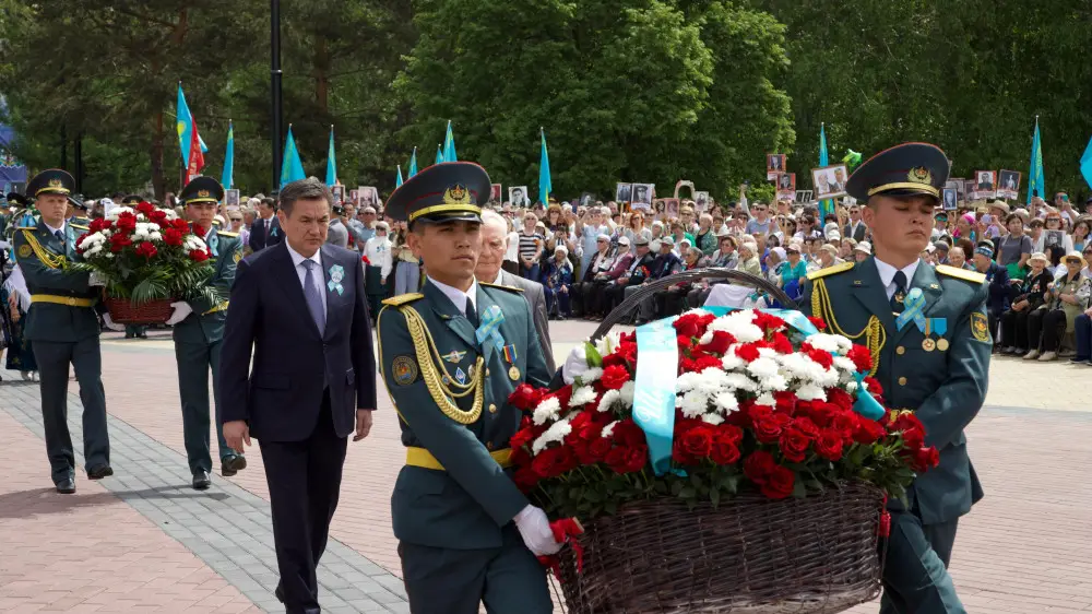 "Сегодня мы склоняем головы перед светлой памятью тех, кто отдал свою жизнь за свободу и мир. Их подвиг - вечный пример самоотверженности и любви к Родине. Мы благодарим каждого ветерана, каждого труженика тыла за их неоценимый вклад в Победу. Благодаря вам мы живем под мирным небом и воспитываем новое поколение в духе патриотизма", - отметил аким области Нурымбет Сактаганов.