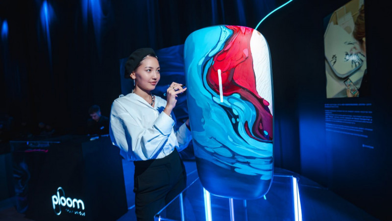 "Я разработала четыре дизайна объектов в разных направлениях и разной стилистике. Представители JTI решили не выбирать один из них, а предложить на суд публики все работы. Одна из них, с элементами урбанистики, изображает город Алматы в футуристическом облике, с неоновыми лучами, это будущее нашего любимого города. Также я представила этим вечером абстракцию, работу с элементами национального орнамента и дизайн в стиле метафутуризма с элементами граффити. Кроме того, прямо здесь, на мероприятии, мы с гостями разрисовываем вместе еще два огромных девайса – люди с большим восторгом берут маркеры и проявляют себя с помощью искусства", - поделилась Асель Сабыржанкызы.