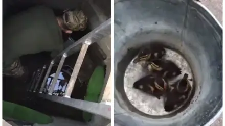 Маленькие утята не смогли самостоятельно выбраться на поверхность.