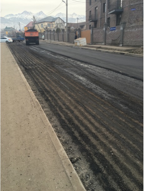 В управлении Государственного архитектурно-строительного контроля сообщили, что на данном объекте производятся работы по строительству водоканала. "На фото из обращения видно, что проложено асфальтобетонное покрытие по траншее на месте производства работ, после чего была произведена фрезеровка существующего полотна. На данный момент подрядной организацией АО "Алматыинжстрой" построен водовод протяженностью 1 километр по улице Саяна Шаймерденова, ведутся работы по восстановлению асфальтобетонного покрытия на всю ширину проезжей части, проложен первый, крупнозернистый слой", - сообщили в управлении. Свой ответ специалисты также сопроводили фотографиями: