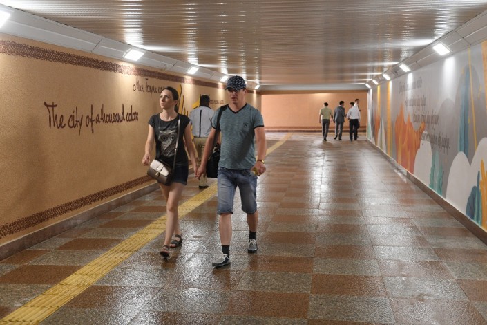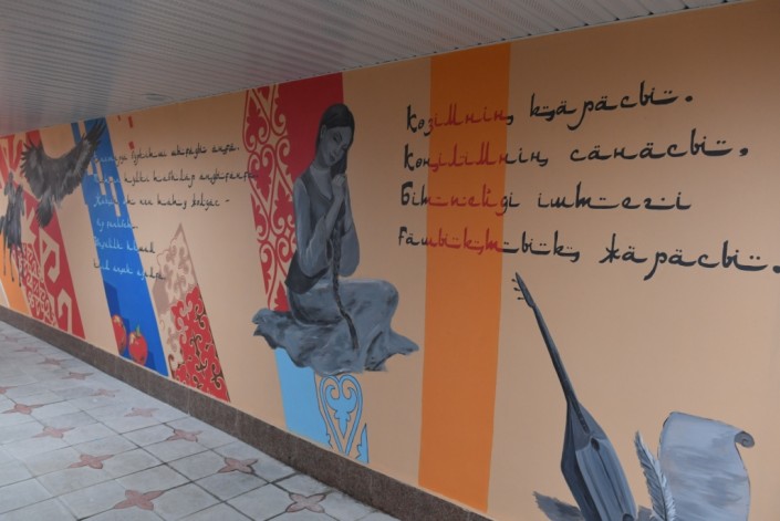 В подземном переходе на пересечении улиц Абая и Абылай хана стены стилизовали цитатами казахского поэта и просветителя Абая Кунанбаева.