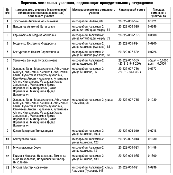 13 земельных участков изымают в микрорайоне Калкаман-2 в Наурызбайском районе города для строительства объекта электрического транспорта.