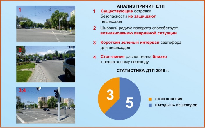 "В целом по городу при активном участии горожан выявлены 72 проблемных участка с высоким уровнем аварийности, где по аналогии с передовыми мегаполисами планируется сузить радиус поворотов, увеличить интервал светофоров для пешеходов, перенести стоп-линии и другое. Кроме того, запланировано строительство 100 новых пешеходных переходов. По многочисленным просьбам горожан на 50 участках будут обустроены островки безопасности, разделяющие широкую проезжую часть. Возле социальных и образовательных объектов принято решение организовать приподнятые трапециевидные пешеходные переходы", - сообщил аким.