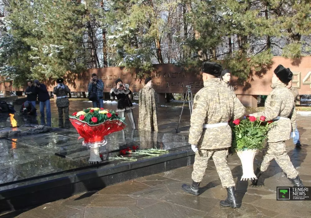 В Алматы отметили 74-ю годовщину подвига 28 гвардейцев-панфиловцев, передает корреспондент Tengrinews.kz. Несколько десятков человек возложили цветы к Вечному огню в память о погибших солдатах.