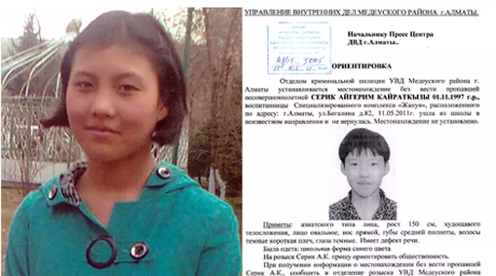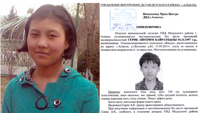 14-летняя девочка, страдающая нарушением речи, олигофренией, аутизмом и другими заболеваниями, ушла в неизвестном направлении. По словам директора спецкомплекса Хафизы Сериковой, 11 мая девочка не пришла на послеобеденные занятия, и до сих пор о ней ничего неизвестно.