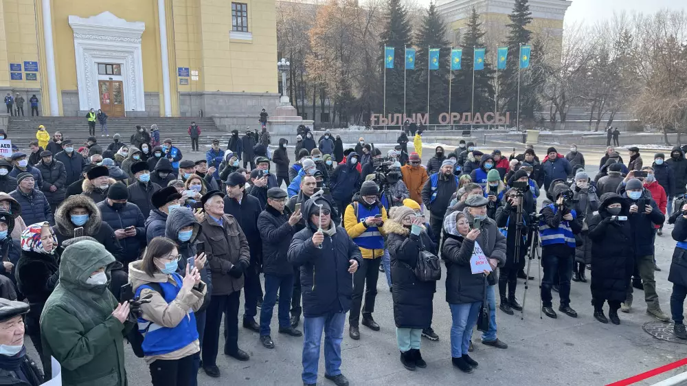 Собрание началось днем 5 февраля около 12.00. Люди собрались возле памятника Шокану Уалиханову, расположенному по улице Шевченко.