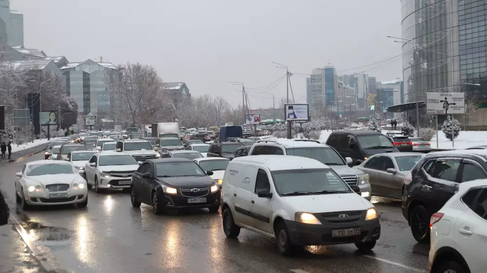 Заторы на дорогах могут быть связаны с погодой - в Алматы наблюдается снег с дождем.