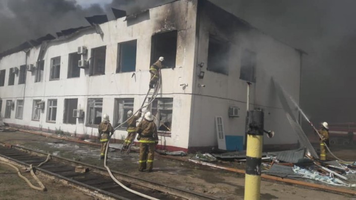 "11 июля на пульт противопожарной службы поступило сообщение о пожаре на территории ремонтно-эксплуатационного депо города Арысь Туркестанской области. Произошло возгорание крыши двухэтажного административного здания на площади 840 квадратных метров с последующим распространением огня на кровлю цеха по ремонту на площади в 1200 квадратных метров. Общая площадь пожара 2040 квадратных метров. В ликвидации пожара задействованы 41 человек личного состава и 10 единиц пожарной техники ДЧС Туркестанской области, пожарный поезд и 8 работников станции Арысь. Принятыми мерами пожар локализован в 16:45", - сообщили в КЧС МВД.