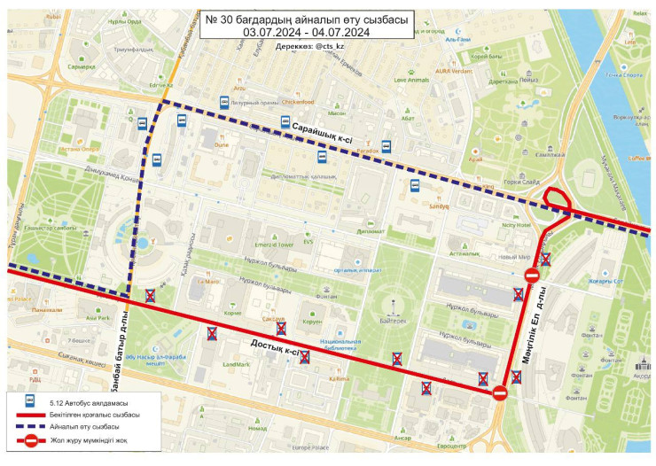 "Изменение связано с ограничением движения транспорта по проспекту Мангилик Ел", - сообщили в пресс-сулжбе CTS.