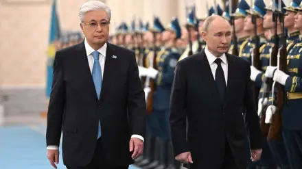 Касым-Жомарт Токаев и Владимир Путин представили друг другу членов официальных делегаций. Начальник роты почетного караула отдал приветственный рапорт, прозвучали государственные гимны двух стран.