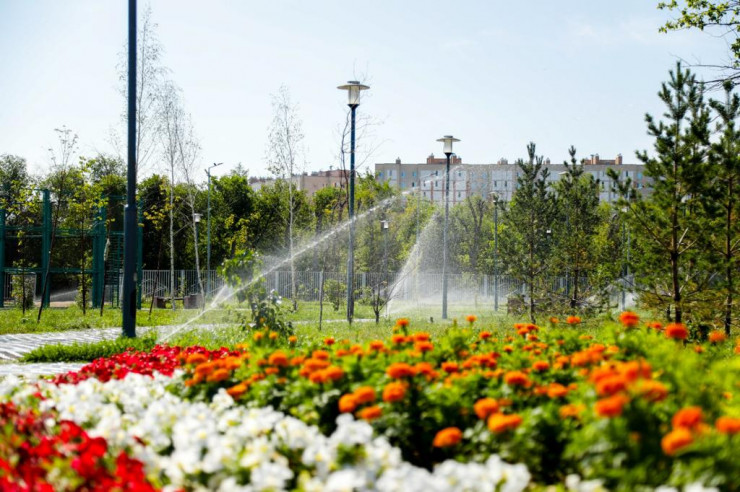 Локальные поливочные системы и скважины смонтированы на территории 56 парков и скверов города. Еще на территории ряда скверов ведутся работы по монтажу локальных систем полива. Вопросы полива планируется решить путем прокладки трубопроводов с канала Нура-Ишим, реки Есиль и Акбулак, а также бурения глубинных скважин.