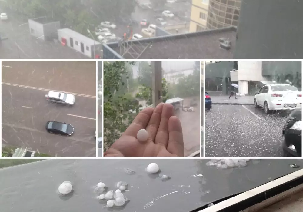 Первые сообщения о том, что в Астане начался град с дождем, поступили от пользователей, находящихся на правом берегу. При этом в других районах города в этот момент было сухо. Непогода царила недолго. Уже через пару минут после окончания града над столицей снова засветило летнее солнце.