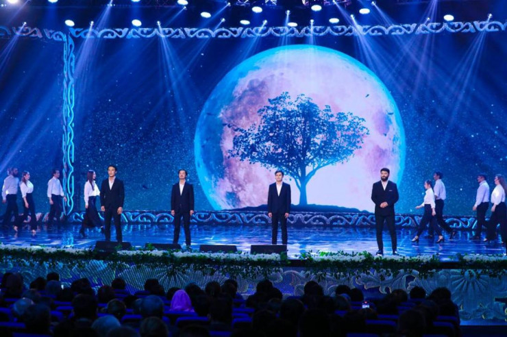 Заслуженный артист РК Секен Турысбеков и заслуженный деятель РК Ренат Гайсин исполнили песню "Акжауын", лауреат Международного конкурса "Славянский базар" Амре – композицию "Қыз-ай", молодой исполнитель из Астаны, лауреат международных и республиканских конкурсов Мади Сыздыков - песню "Атамекен".
