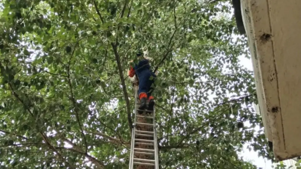 В Астане спасатели Министерства по чрезвычайным ситуациям помогли коту, который не смог слезть с дерева, передает Tengrinews.kz со ссылкой на ведомство.