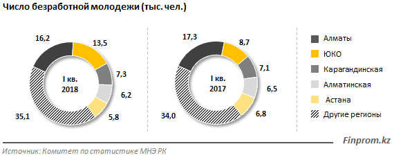 Отмечается, что максимальный уровень безработицы по итогам первого квартала 2018 года зафиксирован в Алматы. Уровень безработной молодежи за первый квартал 2018 года составил 4,1 процента, в аналогичном периоде прошлого года - 3,9. Количество рабочей силы выросло на 1,2 процента, до 2,07 миллиона  человек.
