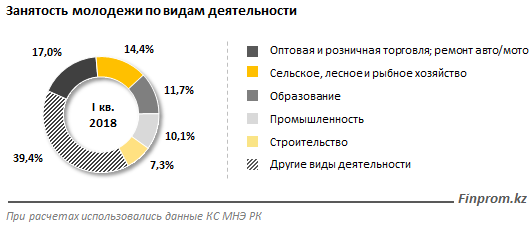 По видам деятельности наибольший интерес среди молодежи вызывают сферы оптовой и розничной торговли, ремонта автомобилей и мотоциклов - 337,7 тысячи человек.