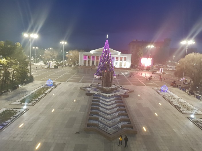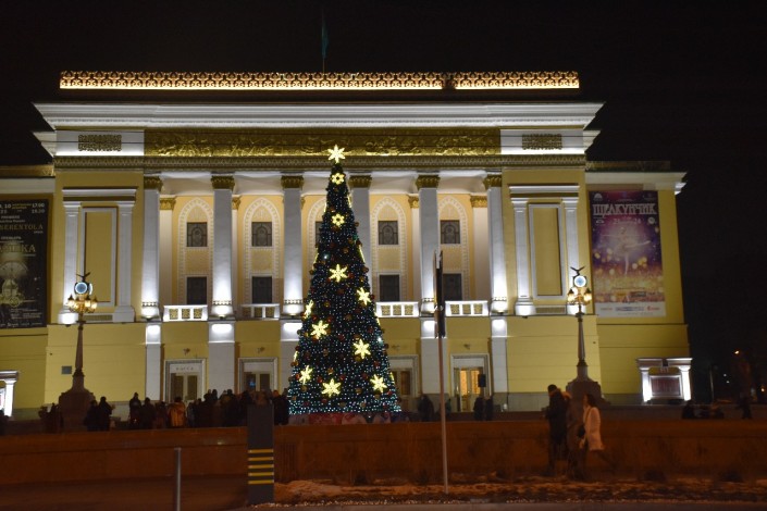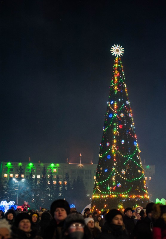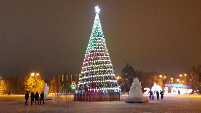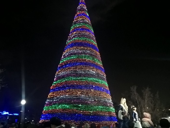 Усть-Каменогорск стал первым городом Казахстана, где в этом году на центральной площади установили елку. Лесную красавицу привезли в город еще в середине ноября с Черемшанского лесничества. Ее высота 24 метра, и чтобы нарядить главный символ новогоднего праздника, потребовалось более 500 шаров. На них и на оплату труда тех, кто украшал, из городского бюджета потратили порядка четырех миллионов тенге. Правда, после того как елку украсили, самой лесной красавицы стало совсем не видно.
