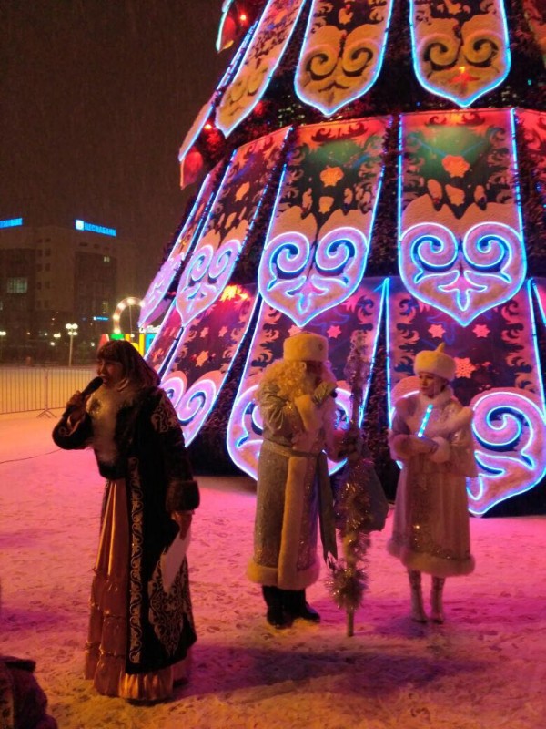 20 декабря в Актобе на проспекте Абая состоялось зажжение огней на главной елке города. Зажигать ее Деду Морозу помогли победитель республиканского телепроекта "Мен қазақпын" Ардак Елеусиз и известная спортсменка, многократная чемпионка Казахстана, Азии и мира по самбо Райса Байлиева. 30-метровая конструкция, самая большая в Актюбинской области, обошлась бюджету в ноль тенге. Искусственная красавица была приобретена еще в 2011 году на спонсорские средства. Правда, "дерево" пришлось немного подремонтировать - из-за вандалов была подпорчена его нижняя часть, рассказали в секторе благоустройства и озеленения городского отдела ЖКХ. Для ночного оформления главной елки было использовано 38 гирлянд общей длиной более одного километра. Кроме этого, елка украшена национальным орнаментом. Управление светодиодным ночным освещением елки проводится с помощью записанной компьютерной программы.
