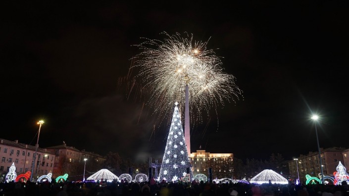 В Шымкенте 20 декабря зажгли огни главной 17-метровой елки на площади имени аль-Фараби. Главные елки поставили в трех местах: на площади имени аль-Фараби, в сквере "Шәмші әлемі", на площади административно-делового центра. В качестве главной елки установили "лесную красавицу", приобретенную три года назад. Ее украсили 200 игрушек. 31 декабря будут организованы праздничные мероприятия, посвященные Новому году, на площади имени аль-Фараби с 11.00 часов дня до 00.30 часов ночи (концертная программа, дискотека, праздничный салют).