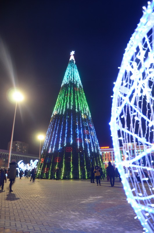 Усть-Каменогорск стал первым городом Казахстана, где в этом году на центральной площади установили елку. Лесную красавицу привезли в город еще в середине ноября с Черемшанского лесничества. Ее высота 24 метра, и чтобы нарядить главный символ новогоднего праздника, потребовалось более 500 шаров. На них и на оплату труда тех, кто украшал, из городского бюджета потратили порядка четырех миллионов тенге. Правда, после того как елку украсили, самой лесной красавицы стало совсем не видно.