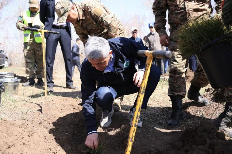 В посадке сосен участвовал также и аким Карагандинской области Ермаганбет Булекпаев.