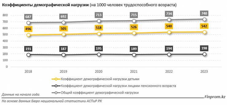 За последние пять лет демографическая ситуация в Казахстане значительно изменилась. На каждую тысячу трудоспособных казахстанцев приходится 740 пожилых и детей. Об этом в своих исследованиях сообщает Finprom.kz, передает Тengrinews.kz.