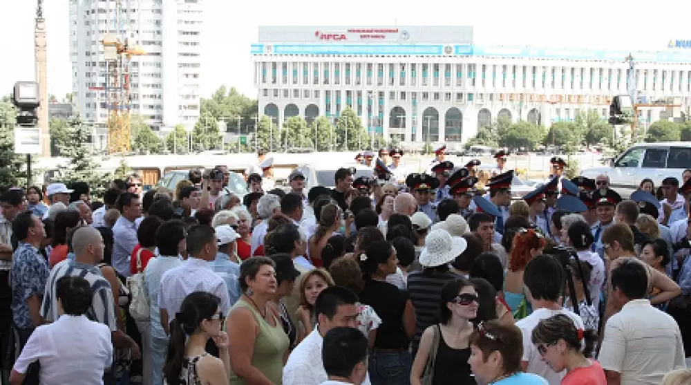 В Казахстане незаконно занято 800 гектаров земли Протестующие у акимата Алматы. Фото ©Ярослав Радловский