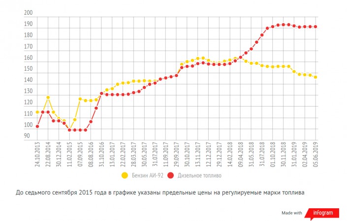 Стоимость бензина АИ-92 и дизельного топлива в мае.