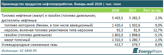 Почти 84 процента производства пришлось на ключевые регионы-нефтепереработчики - Атыраускую область (здесь расположен Атырауский нефтеперерабатывающий завод - АНПЗ), Павлодарскую (в области работает Павлодарский нефтехимический завод - ПНХЗ) и Туркестанскую, бывшую ЮКО (где размещен Шымкентский нефтеперерабатывающий завод "ПетроКазахстан Ойл Продактс" - ПКОП).